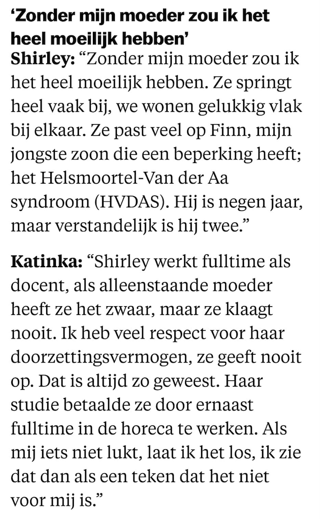 Artikel Het Parool (15 juli) jongste zoon Shirley heeft het Helsmoortel-Van der Aa syndroom